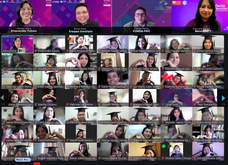 La Paz, diciembre de 2025. – La Fundación Emprender Futuro, BancoSol y FUNDA-PRÓ celebraron la graduación de la 7ª versión del Programa Mujeres 360, que en esta edición tuvo un alcance internacional formando a más de 240 mujeres jóvenes de Bolivia, Perú, Ecuador, República Dominicana y México en liderazgo y tecnología para los empleos del futuro.