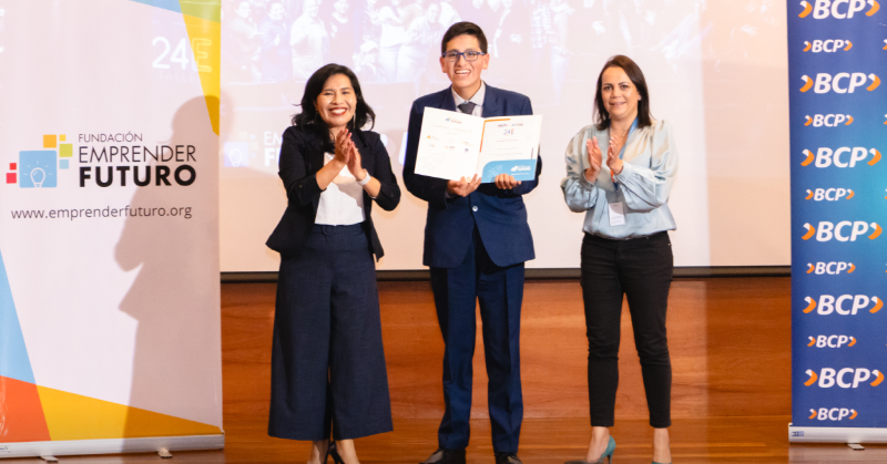 René y Allison Silva cofundadores de la Fundación Emprender Futuro junto a Cecilia Suárez, subgerente de sostenibilidad del BCP